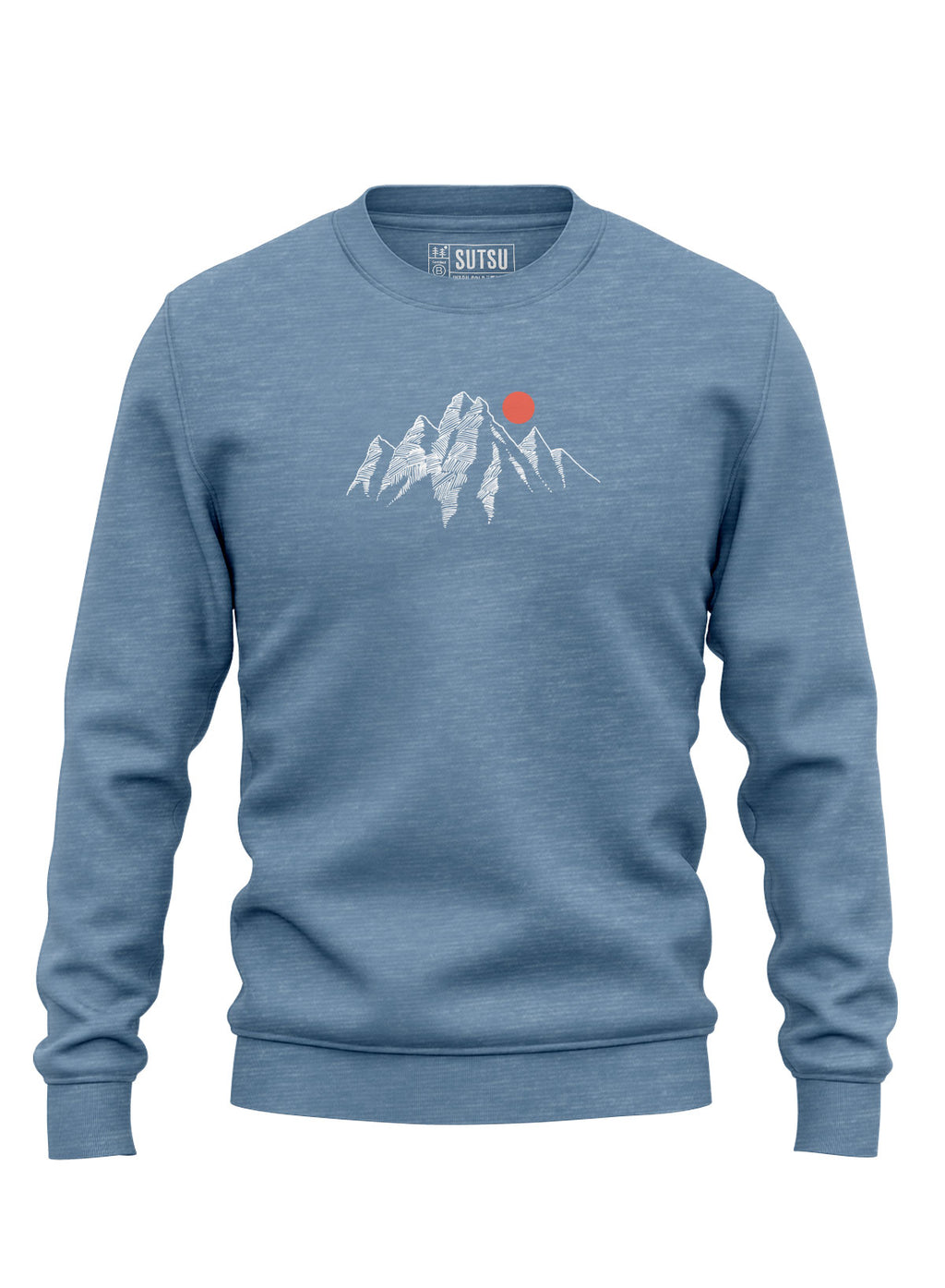Our Sutsu Mountain Scribble 2.0 slim fit sweatshirt is designed in London, printed in England and sustainably sourced. Many of our sustainable streetwear sweatshirts are inspired by observations of nature and this Sutsu Mountain Scribble 2.0 slim fit shirt shares that distinction. There is a breath-taking magnificence about mountain ranges and sunshine reflecting on snow covered caps. It’s the type of grandeur that makes you want to grab a pen and paper and capture the emotion of the moment.