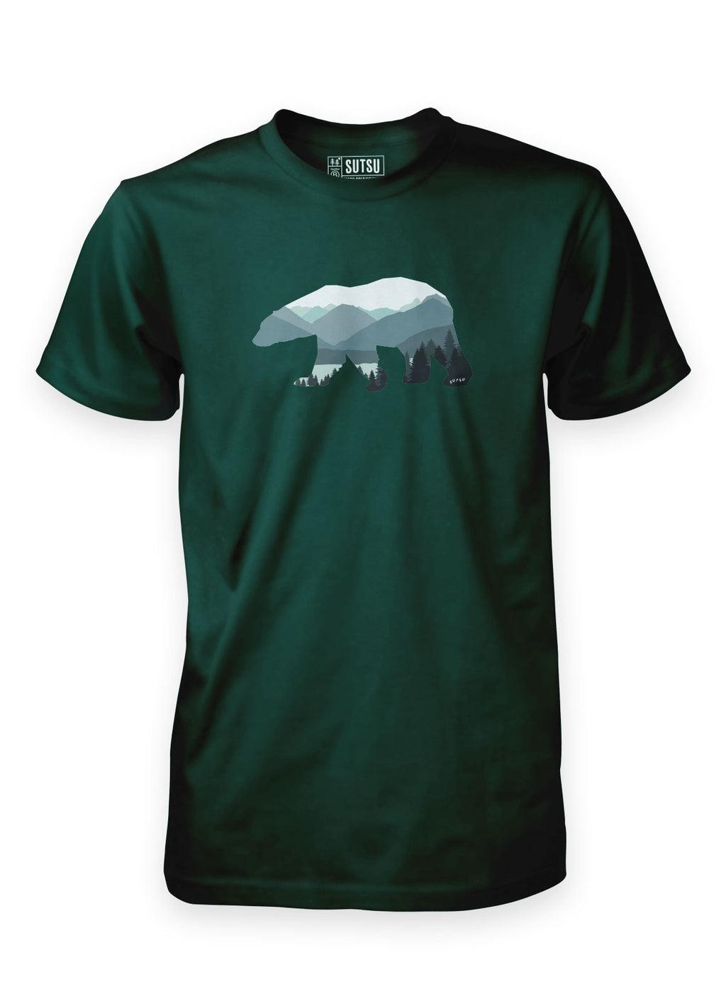 As with all Sutsu ethical streetwear, this tee is made from organic cotton - it feels better against your skin and is better for the planet. Our Bear Walk t-shirt takes a snapshot, the breath-taking beauty and sheer wonder of nature, showcased within the outline of a magnificent bear. The bear not only belongs in this mountainous tree filled landscape, it carries the spirit of the land within itself.